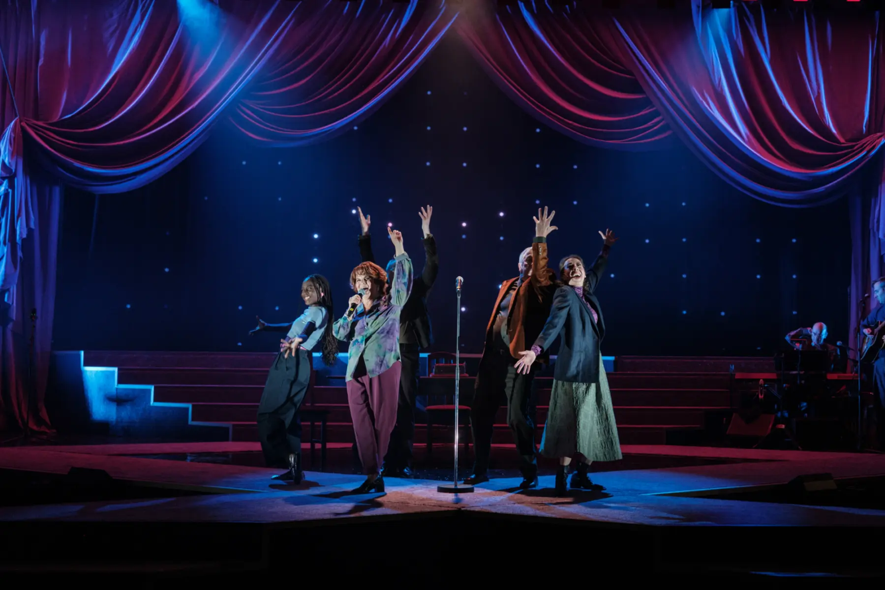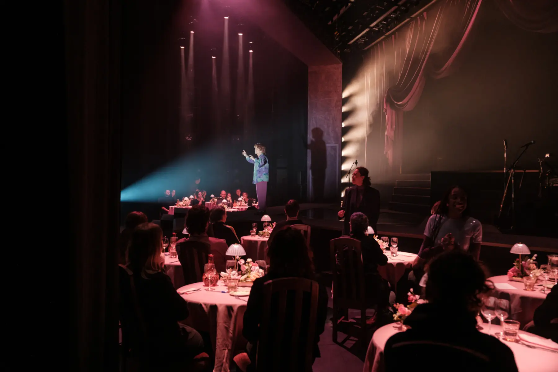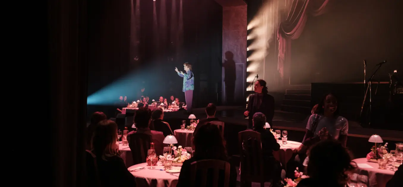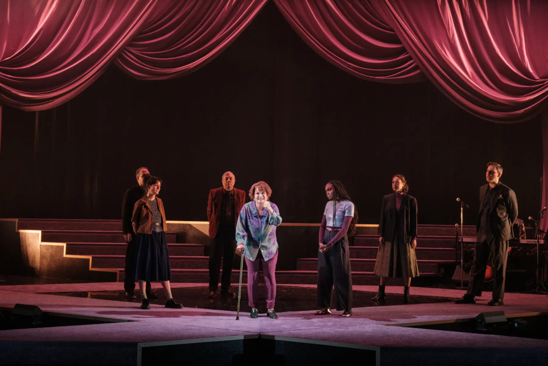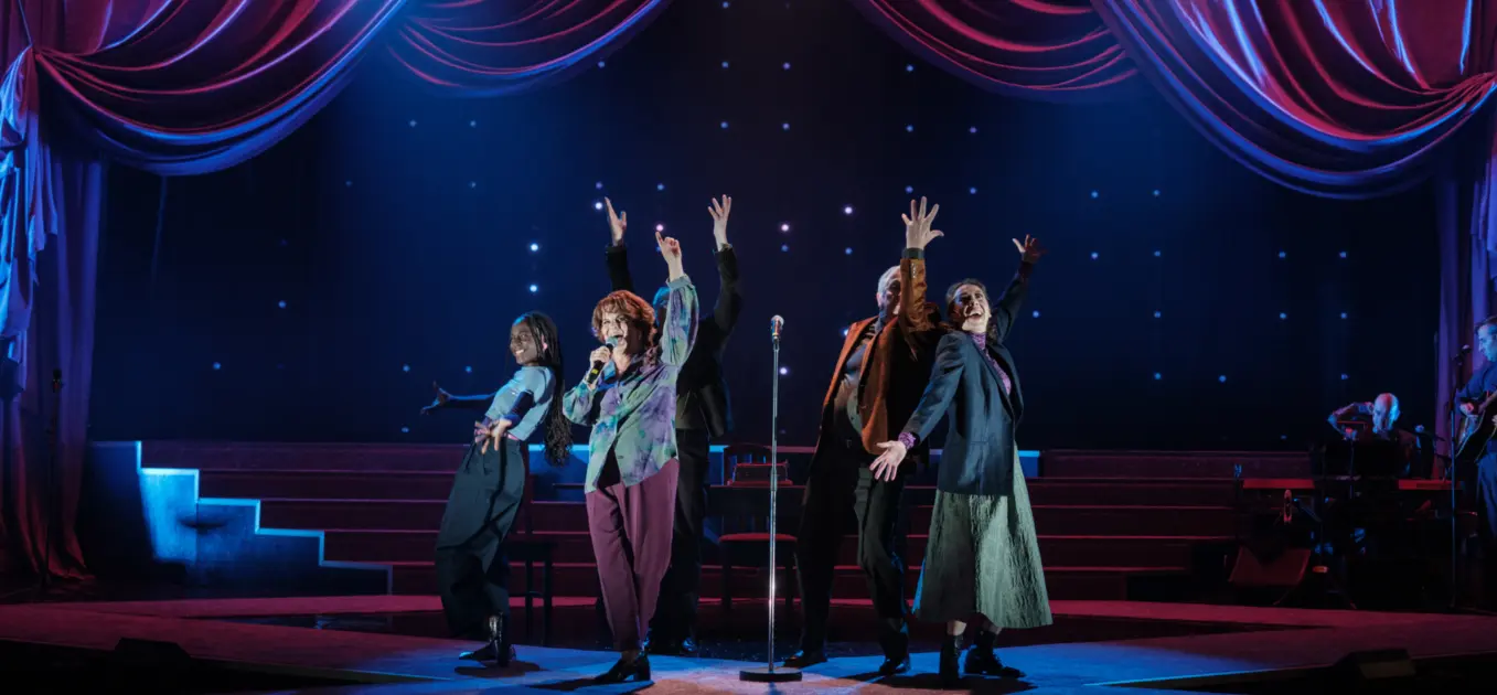 Avec cette nouvelle création qui célèbre Janette Bertrand, Rébecca Déraspe imagine un dialogue animé entre la grande dame, incarnée par Guylaine Tremblay, et plusieurs générations de personnages.